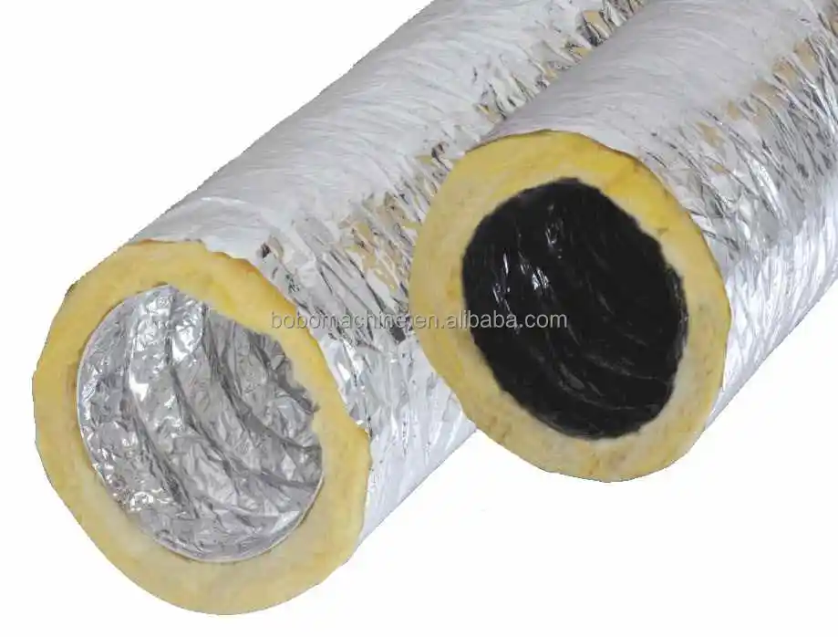 The Flexible aluminum foil duct machine , It with functions optional, It is working for water based glue for making pipes. To meet the fire